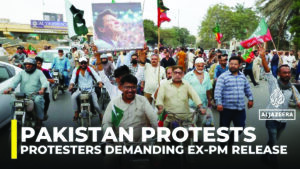 In a message attributed to Khan on his party’s X account on Monday, he urged supporters to “come out and hold peaceful protests until a true democracy is restored in the country”. The former leader has “overwhelming support” in the Khyber Pakhtunkhwa province, in particular, where tens of thousands of people have come out to protest, said Al Jazeera’s Kamal Hyder, reporting from the province’s city of Peshawar.