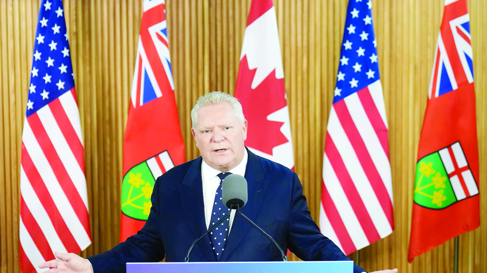 Premier Doug Ford says Ontario will “hold our line” on tariffs and retaliation, including removing alcohol from LCBO shelves, until the United States lifts all tariffs on Canada.